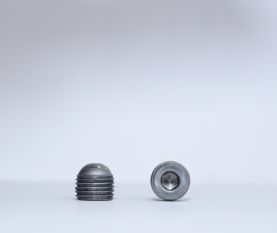 ------------------------------------------------A mild steel grub screw with a round head and a diameter of 7/16 inch and a length of 1/2 inch. Grub screws are used to secure a machine element in place. They are often used in conjunction with a hex key or Allen wrench. Mild steel is a common material for fasteners, and it is known for its strength and durability.